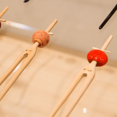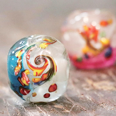 山月工房では、古くから伝わってきた和泉国独特の技法を用いて和泉蜻蛉玉の作品づくりをしています。