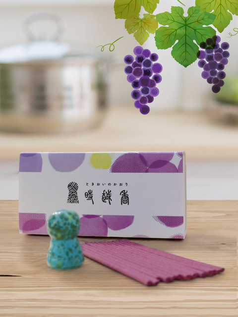 そのお香立てに、大阪府立堺工科高等学校 定時制の生徒が百舌鳥・古市古墳群世界遺産登録を祈願し、地域のぶどうを取り寄せて作成したお香を組み合わせました。
